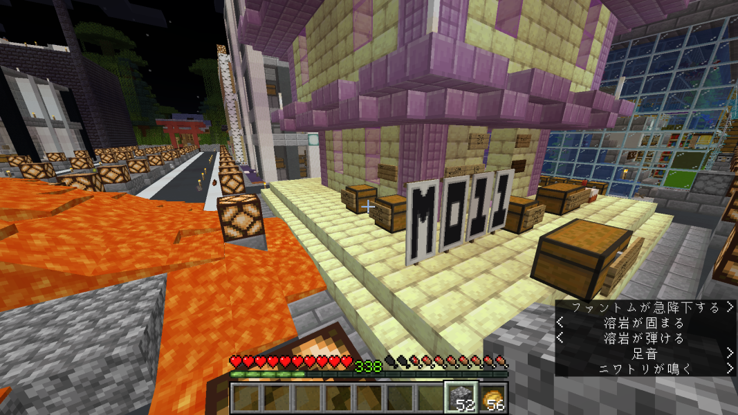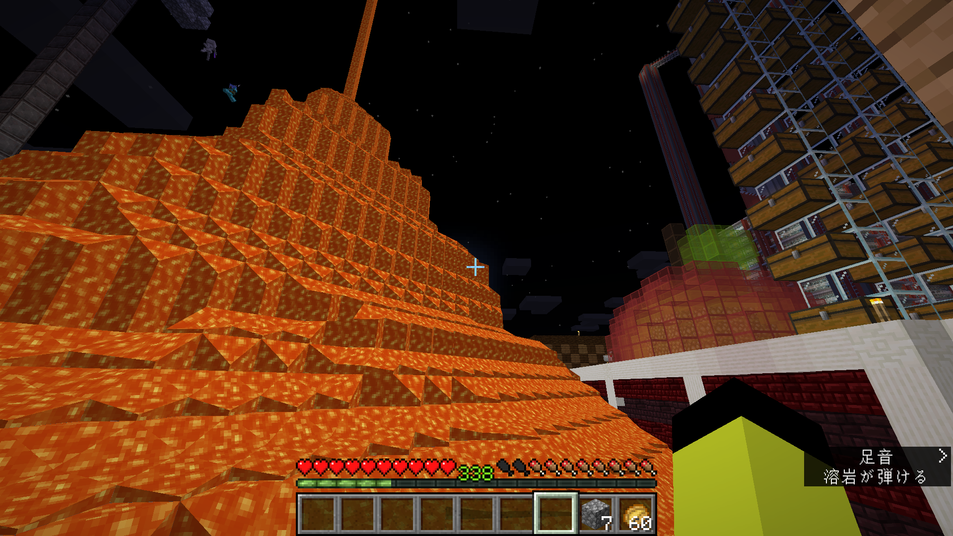 ・マグマ、水を交互に流し、SPAWN島に大きな丸石の山を作っている