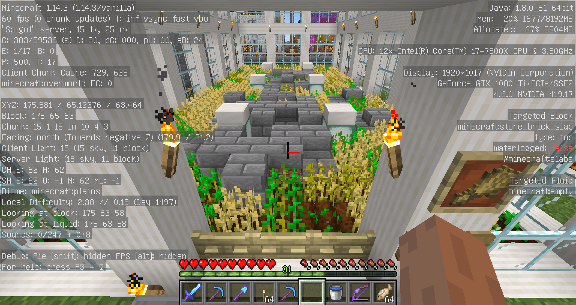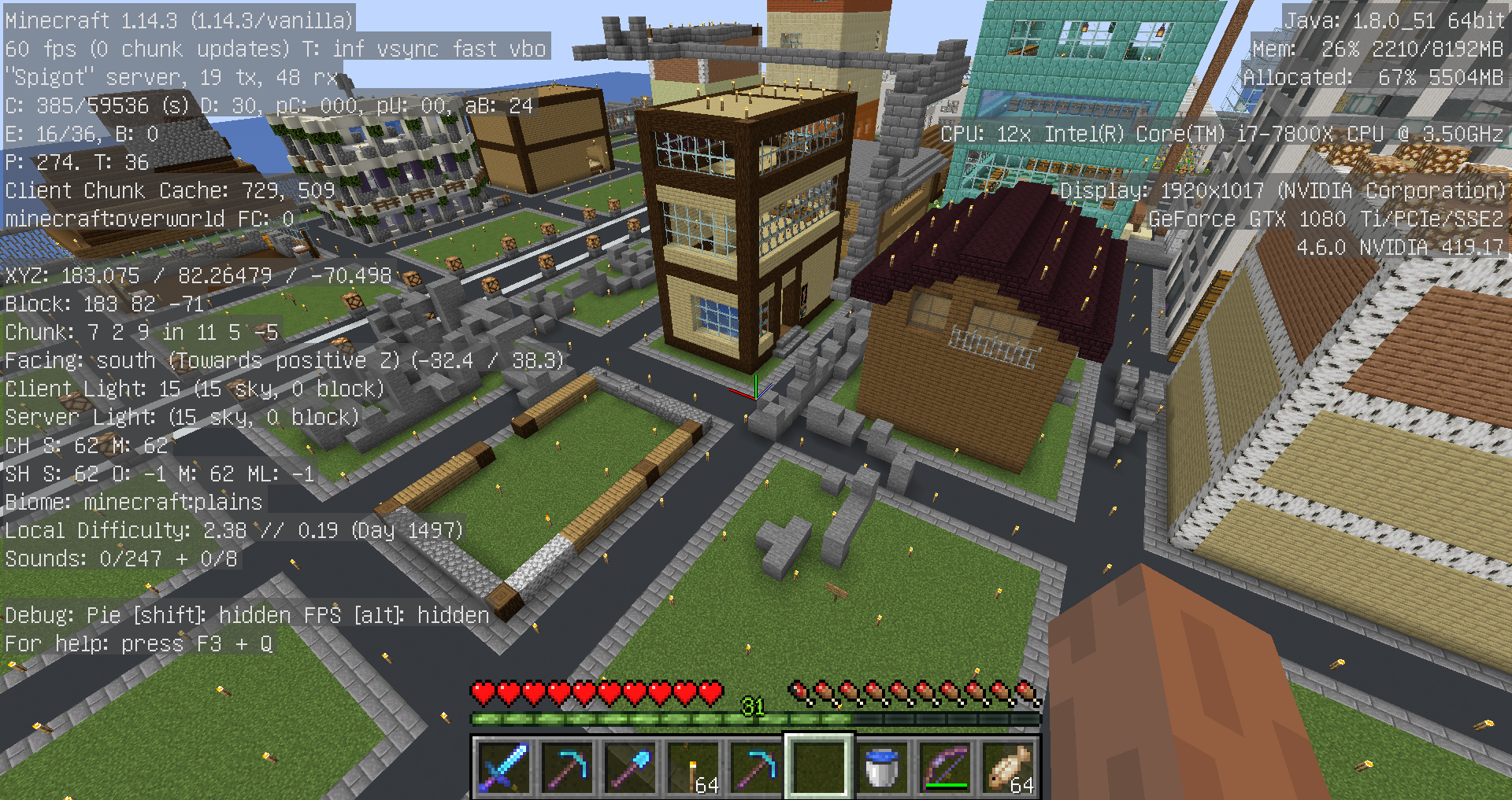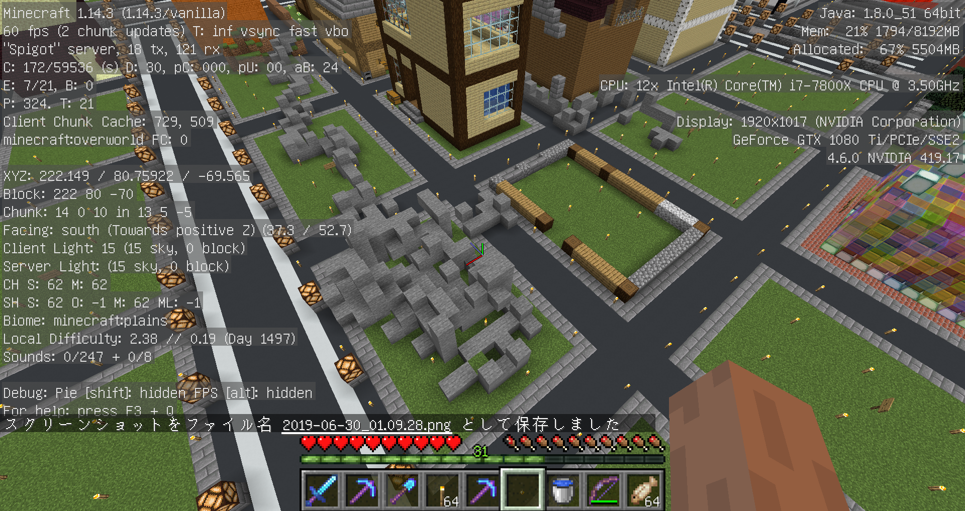 内容:スポーン地点公共農場建屋横、小麦、ニンジン、ジャガイモの荒らしブロック設置など、商店区の通路、空き地のブロック設置など