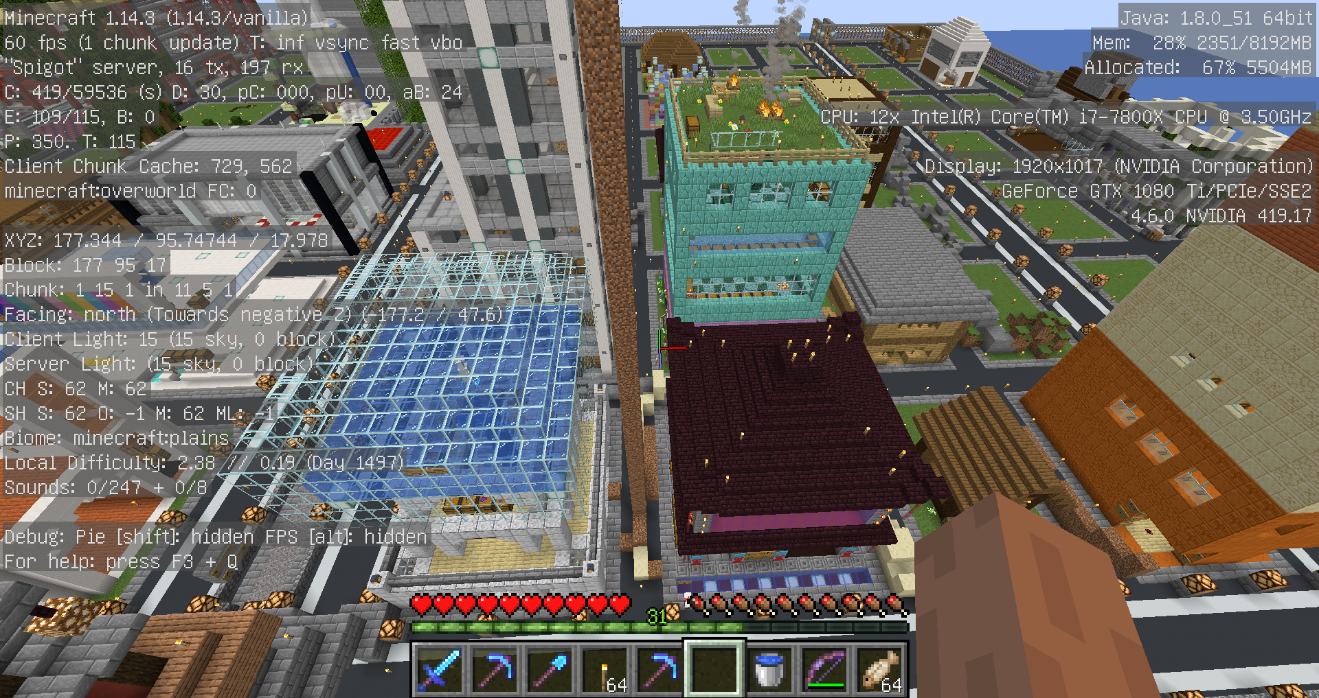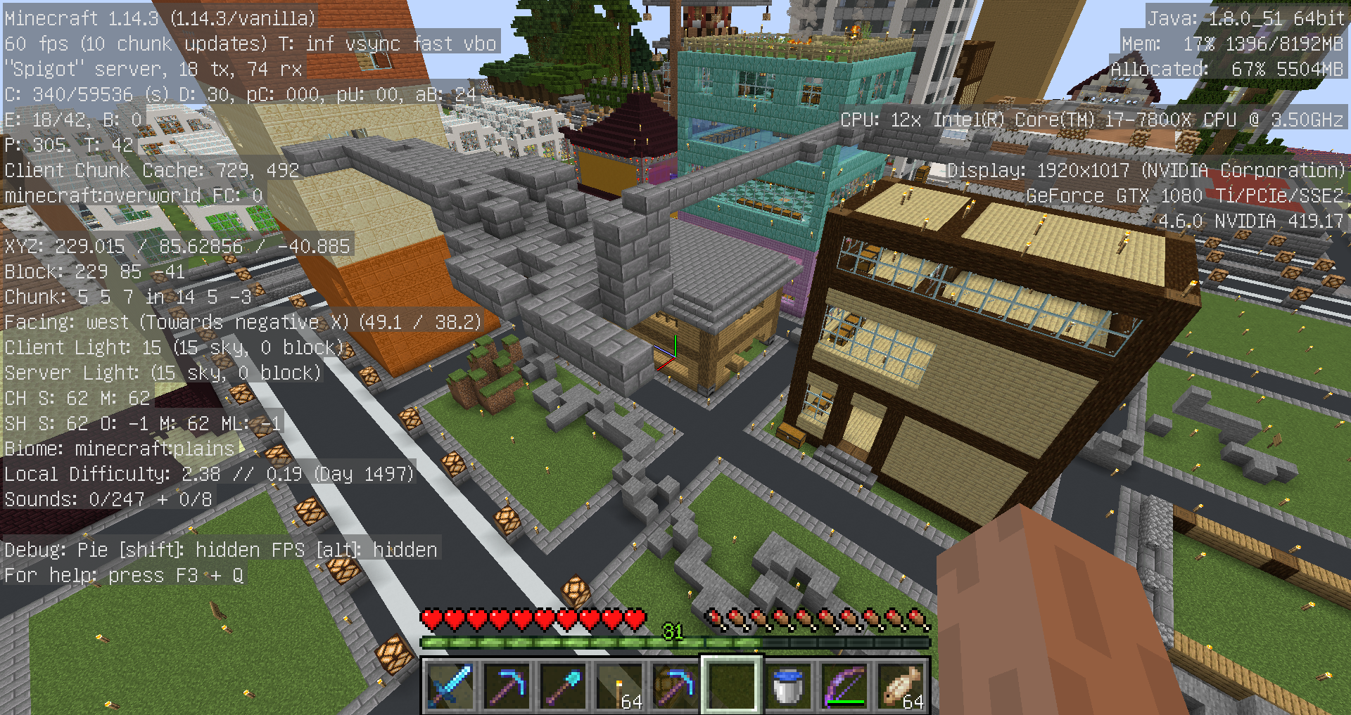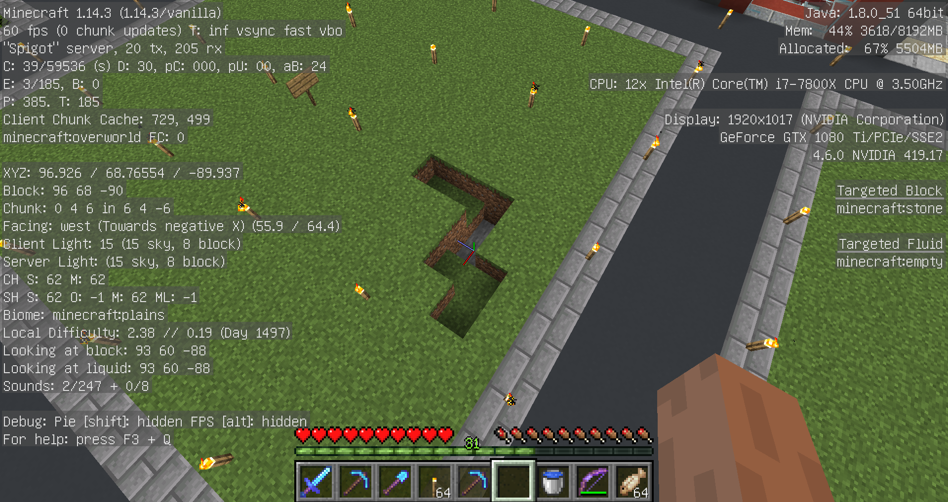 内容:スポーン地点公共農場建屋横、小麦、ニンジン、ジャガイモの荒らしブロック設置など、商店区の通路、空き地のブロック設置など