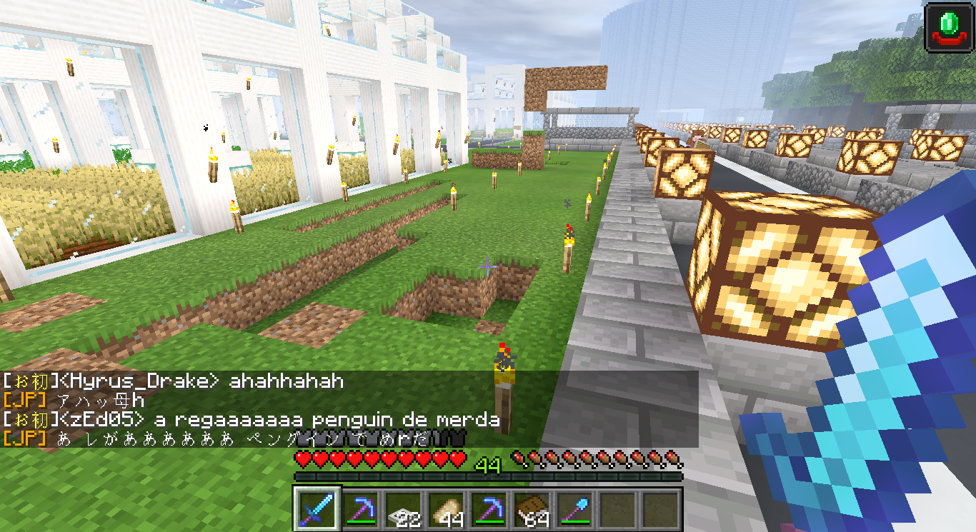 突然10人くらいのプレイヤーが同時にサーバーに接続、チャットで変なことを騒いだ後公共農場の付近の土を削るなどの行動をした後消えていきました